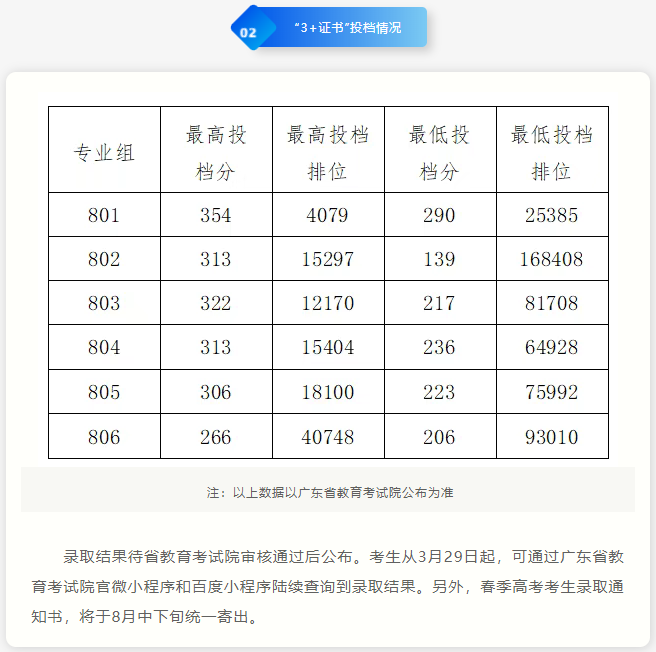 2025年广州幼儿师范高等专科学校3+证书(高职高考)和学考各类投档情况如下:想了解更多,可以咨询我们的【在线老师】