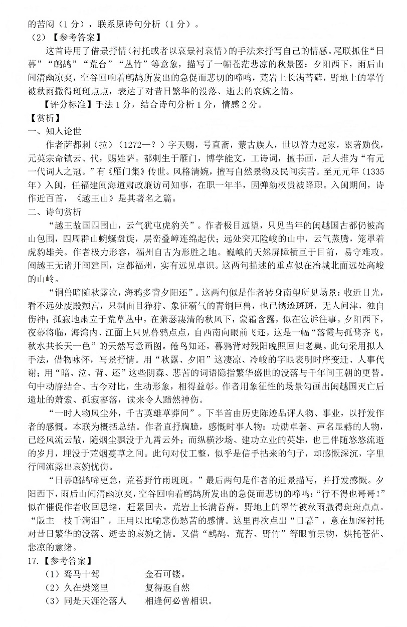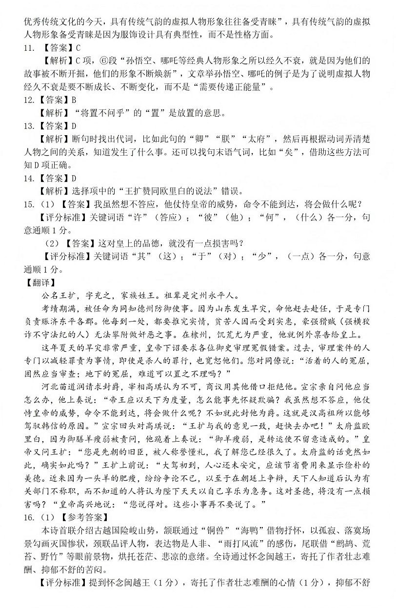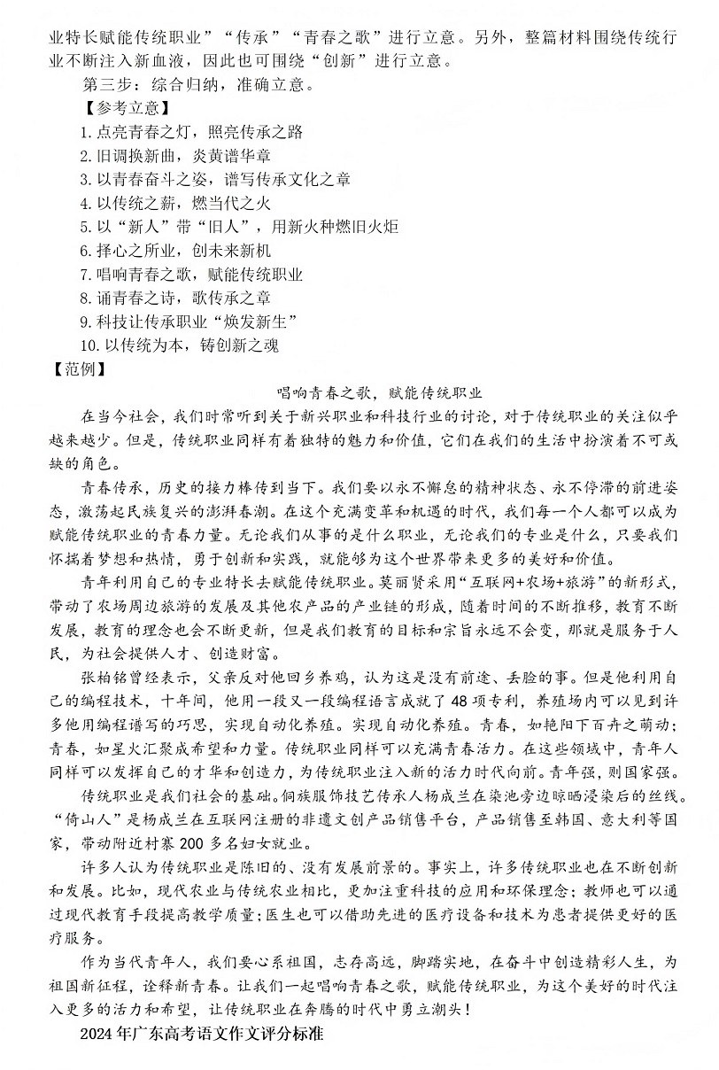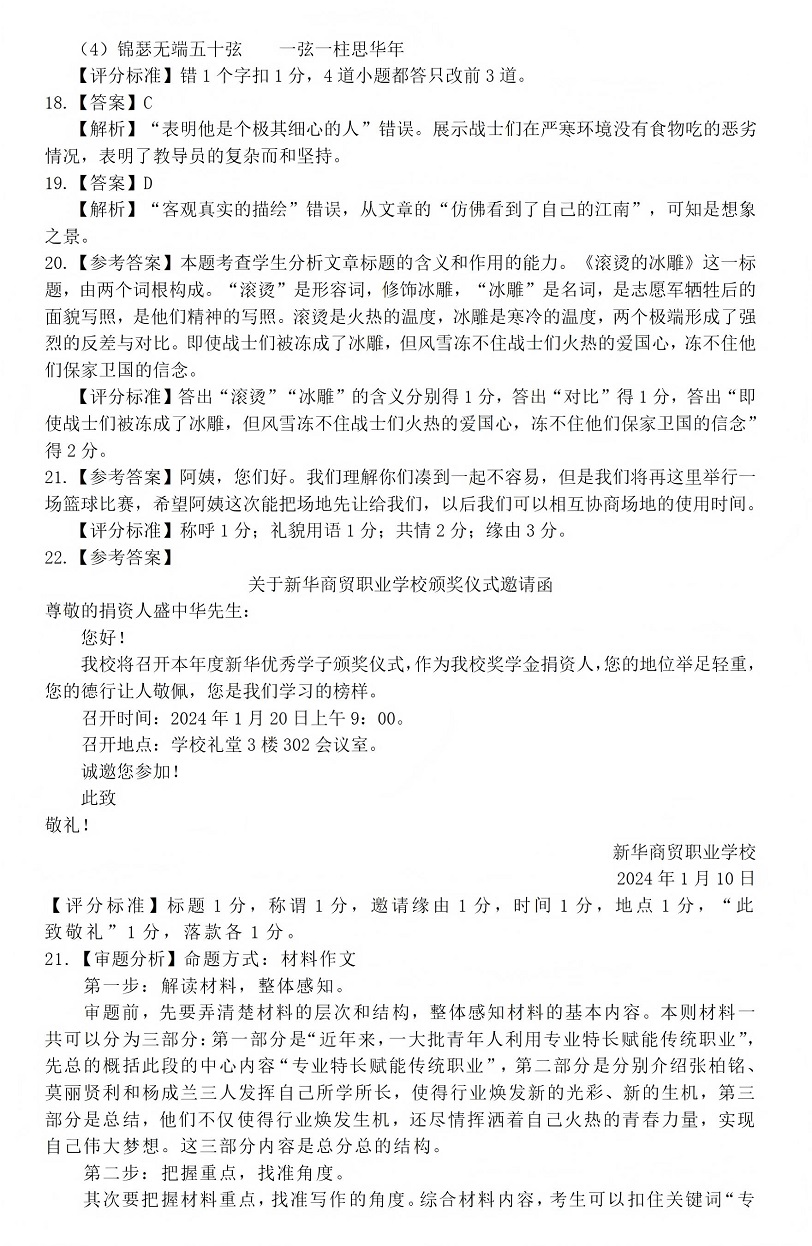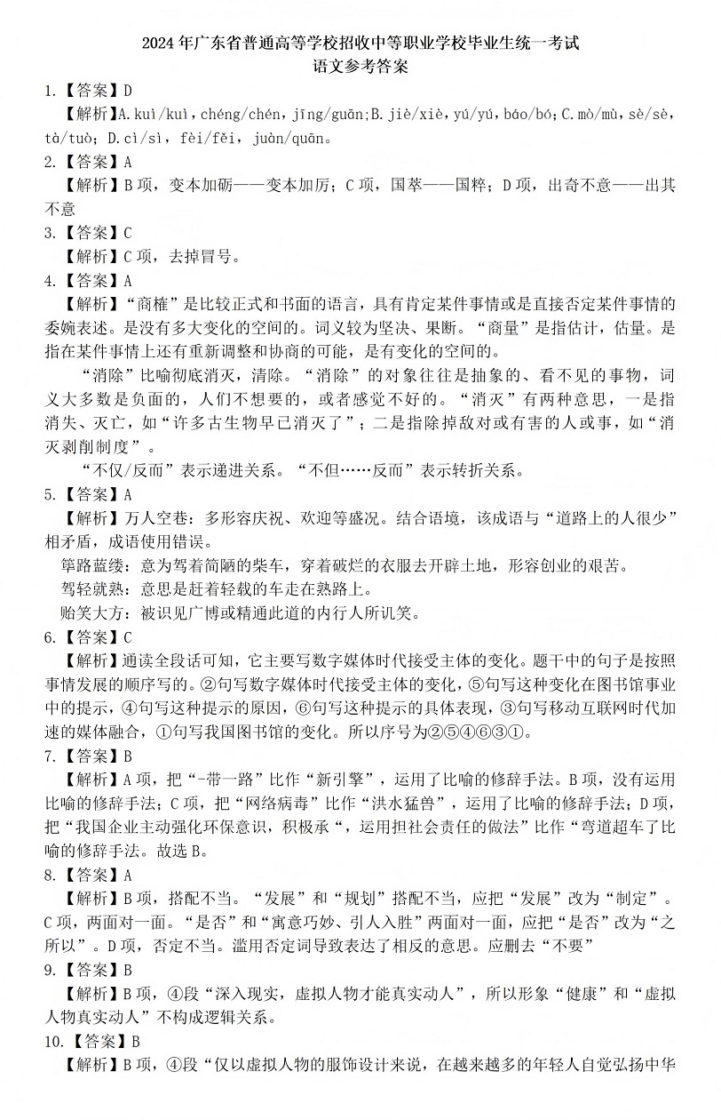 广东2024年“3+证书”高职高考《语文》试题答案: