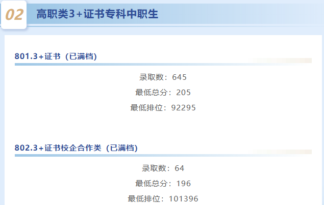 导读:2025年揭阳职业技术学院3+证书(高职高考)普通类最低投档分:205分,最低排位:92295,该分数对应3+证书801组专业;学考普通类投档分:281分,最低排位:224990,分数对应学考601组专业。