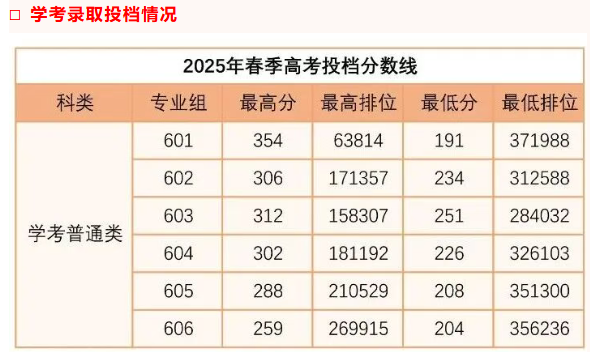 2025年广州涉外经济职业技术学院3+证书(高职高考)和学考各类投档情况如下:想了解更多,可以咨询我们的【在线老师】